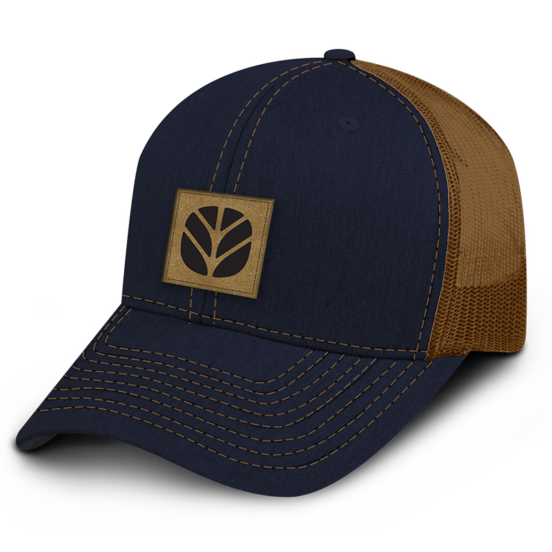 *Faux leather patch with debossed logo * Mesh back *High-profile *Snap closure